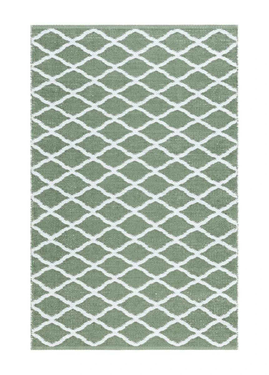 Plastmatta Mimmi Dalli Grön sprider energi och naturlig känsla i rummet. Den handvävda PVC-bomullskonstruktionen är både tålig och mjuk under fötterna.