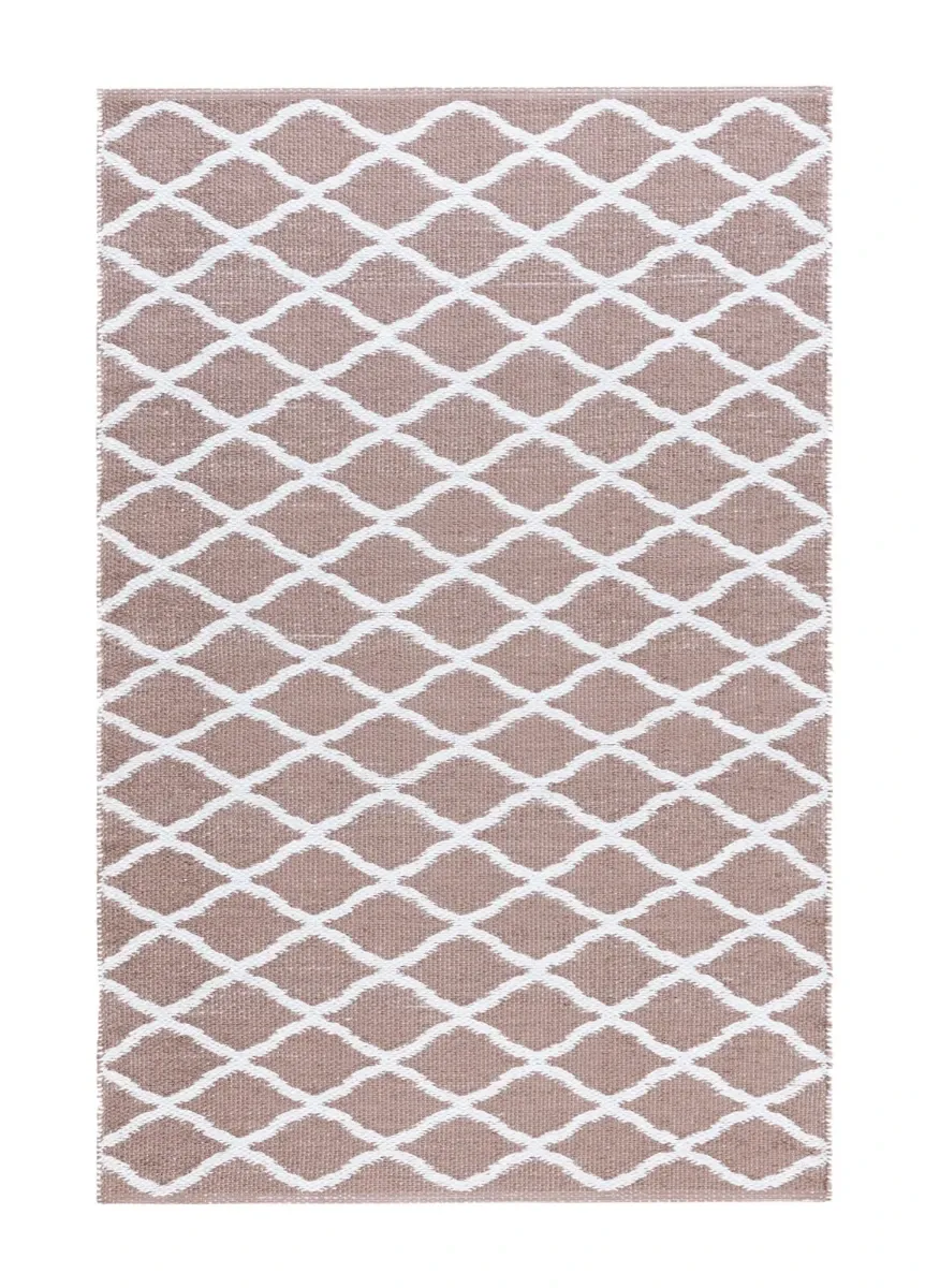 Plastmatta Mimmi Dalli Rosa är charmig och livfull, med en handvävd PVC-bomullskonstruktion som är tålig och mjuk.