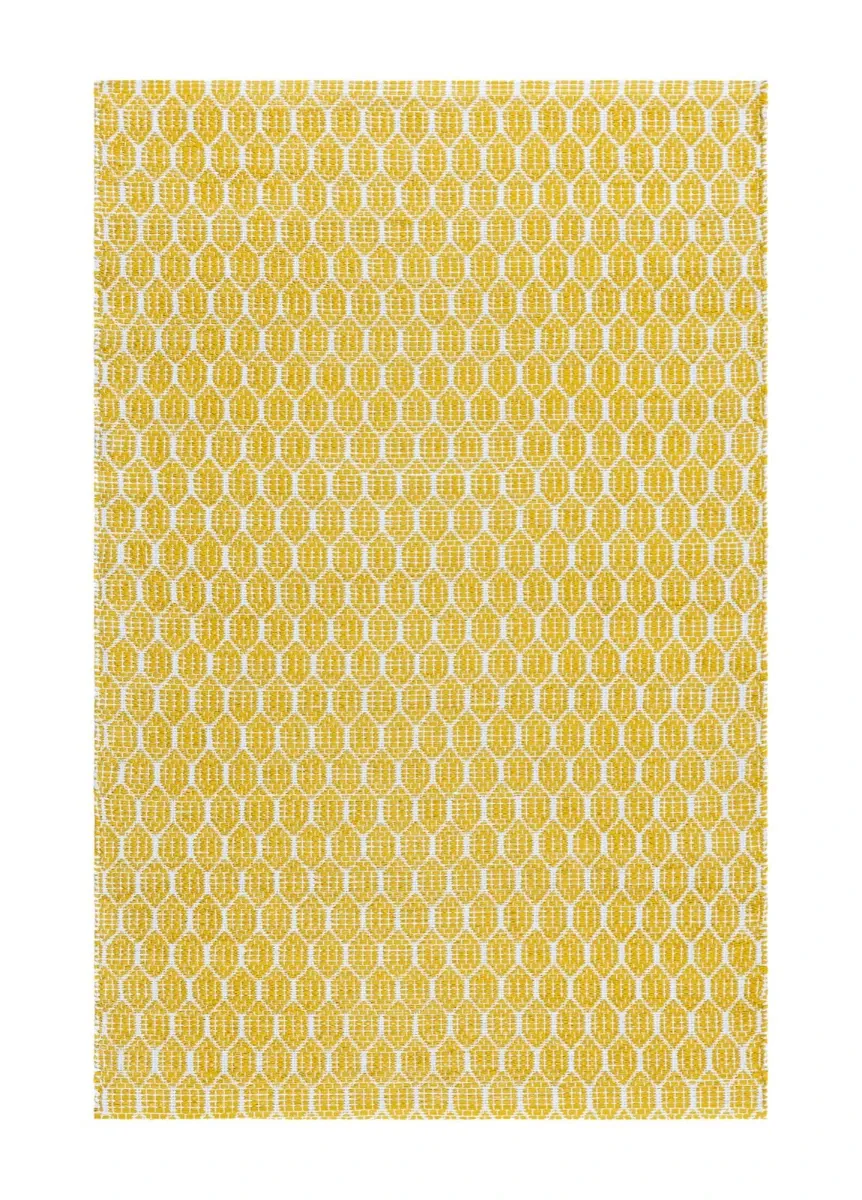 Plastmatta Mimmi Sian Gul är ett piggt och inbjudande inslag i ditt hem. Den handvävda PVC-strukturen ger en slitstark matta som står emot både smuts och fukt, samtidigt som bomullsvarpen ger stabilitet.